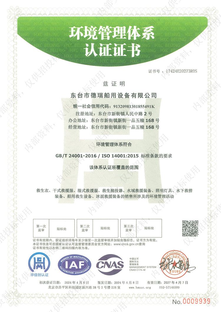 環(huán)境管理體系認(rèn)證證書(英文版)