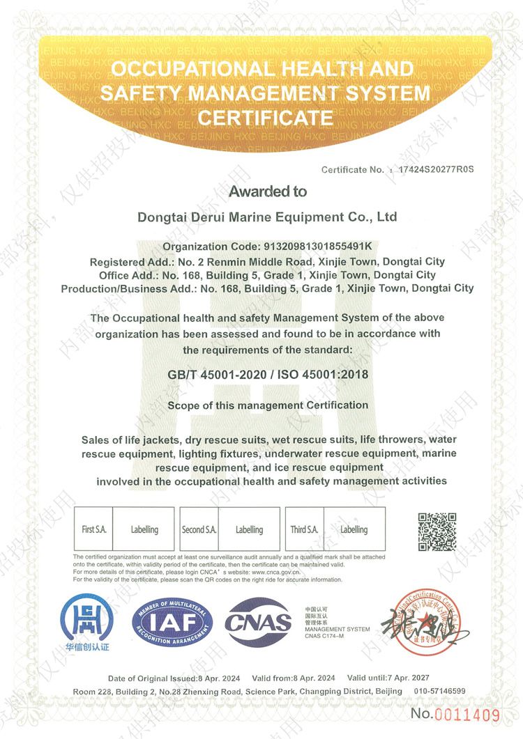 職業(yè)健康安全管理體系認(rèn)證證書(英文版)